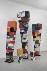 Oder lässt uns der Künstler bewusst allein mit seinen Werken und der bohrenden Frage, ob man das darf – Bücher als Rohstoff zu nutzen?