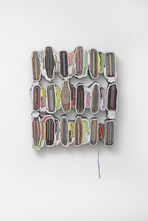 Die älteste Arbeit in unserer Ausstellung ist von 1994, es ist eine bemalte Leinwand, die mit Fundstücken zu einer Collage verbunden ist. Acht Jahre später benutzte François du Plessis dann erstmals Bücher als Grund für seine Malerei. Der Schritt vom Maler zum Bildhauer, der die Bücher als Körper im Raum begreift und sie zu eigenständigen dreidimensionalen Objekten zusammenfügt, erscheint im Rückblick naheliegend und ist doch das Ergebnis einer jahrelangen, beharrlichen Suche. Der Künstler entwickelt immer neue Techniken, mittels derer er die stofflichen Eigenschaften seines Materials auslotet und diesem immer wieder andere, unerwartete Formen entlockt. Seit etwa vier Jahren arbeitet François du Plessis mit farbigen Buchschnitten und gibt so der Farbe einen bestimmenden Anteil in seinem Werk. In gewisser Weise kehrt er damit auch zurück zu seinen Anfängen als Maler, auch wenn er jetzt keinen Pinsel mehr braucht.