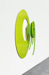 Jürgen Paas uses basic geometric shapes such as circles, squares and rectangles for his works. These shapes are always monochrome, usually intensely bright. They could well represent a sign - red circles have a warning effect, keep you at a distance, orange ones stimulate, blue ones have a relaxing effect, etc. The basic geometric shapes are also a reference, a sign for Jürgen Paas' artistic ancestors, including Donald Judd, Imi Knoebel and Kasimir Malevich. The interplay of the individual signs in the installations gives rise to sounds, moods and atmospheres. KINO, for example, lives from the dynamics of the coloured circles, discs and spirals, from the sound of the colours and the rhythm of their arrangement. Jürgen Paas' works are so abstract that a paraphrase, a set of instruments, must be used to describe them. Music can be one of them.