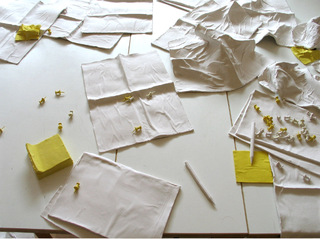 Digitalisation is revolutionising not only medicine, but our entire lives. And we are only at the very beginning. The economy in particular is being radically affected by the changes. Our previously clear images of the world of work are beginning to blur. We are finding ourselves in unclear circumstances. And this is precisely where the artists Maria and Natalia Petschatnikov come in with their exhibition "Group Dynamics". In their installation, they link the art world of the gallery on the ground floor of the commercial building with the world of the offices on the floors above. There is an abundance of drawings, paintings and objects. For example, we discover money, extremely aesthetically depicted, and receipts or envelopes and work folders. The yellow post-its are everywhere. We also identify the typical attributes of the business, such as the managers' "uniform": five shirts, five pairs of shoes, one for each working day of the week, meticulously painted. For Maria and Natalia Petschatnikov, however, business life is a completely alien experience. They have therefore incorporated small "disturbances" into their arrangements. In one of the shirt and shoe combinations, a picture with two pairs of shoes suddenly appears. The painting with one pair of shoes, which actually belongs here, is "hidden" in another part of the gallery.